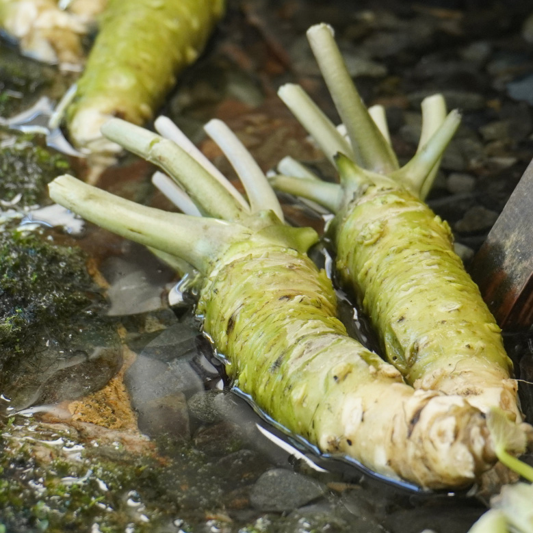 伊豆・河津の伝統:温泉宿シェフが挑むわさび沢の収穫作業