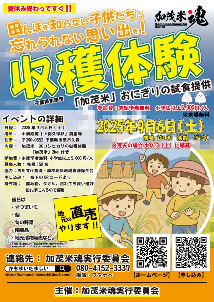 秋の訪れとともに、稲穂が黄金色に輝く季節がやってきました。市原市で開催される「加茂米魂(かもまいだましい)収穫体験イベント」は、春の田植えから続く一年の実りを楽しめる特別な催しです。 開催概要 開催日:2025年9月6日(土) ※小雨決行、荒天時... -